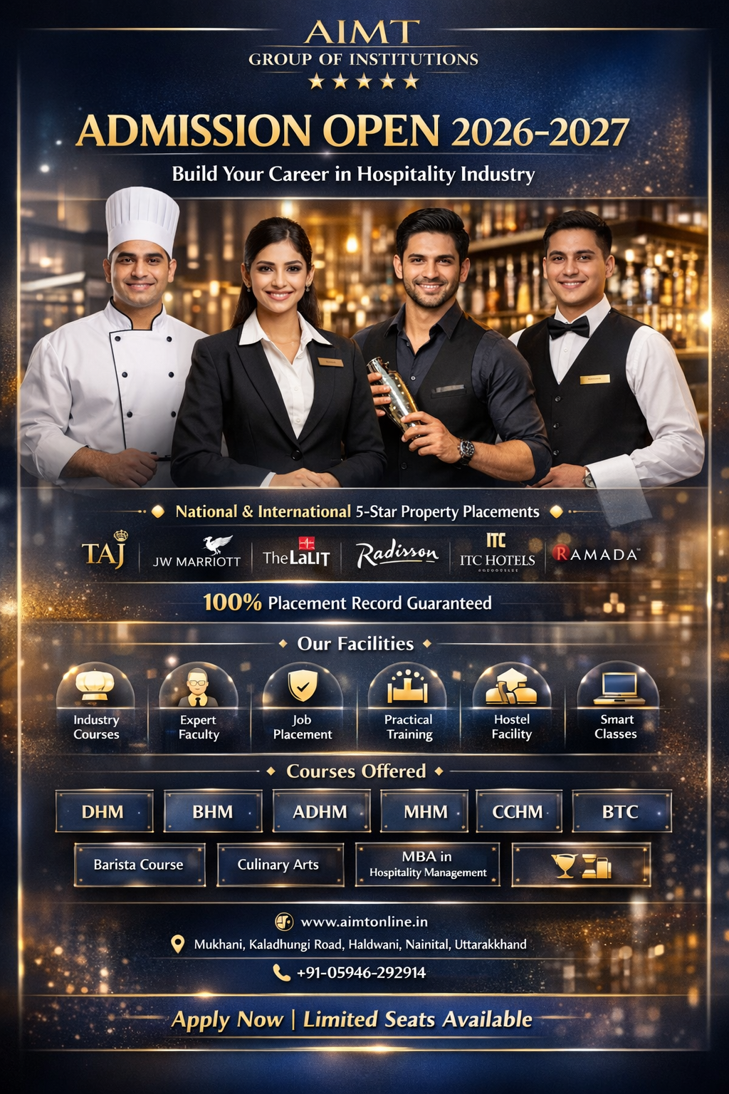 Recently, I did certificate course from AIMT, Haldwani. It is the best institute of Hotel Management at Haldwani Region. After completing my course, I immediately got the placement. Highly recommend for Hotel Management. Kudos👍