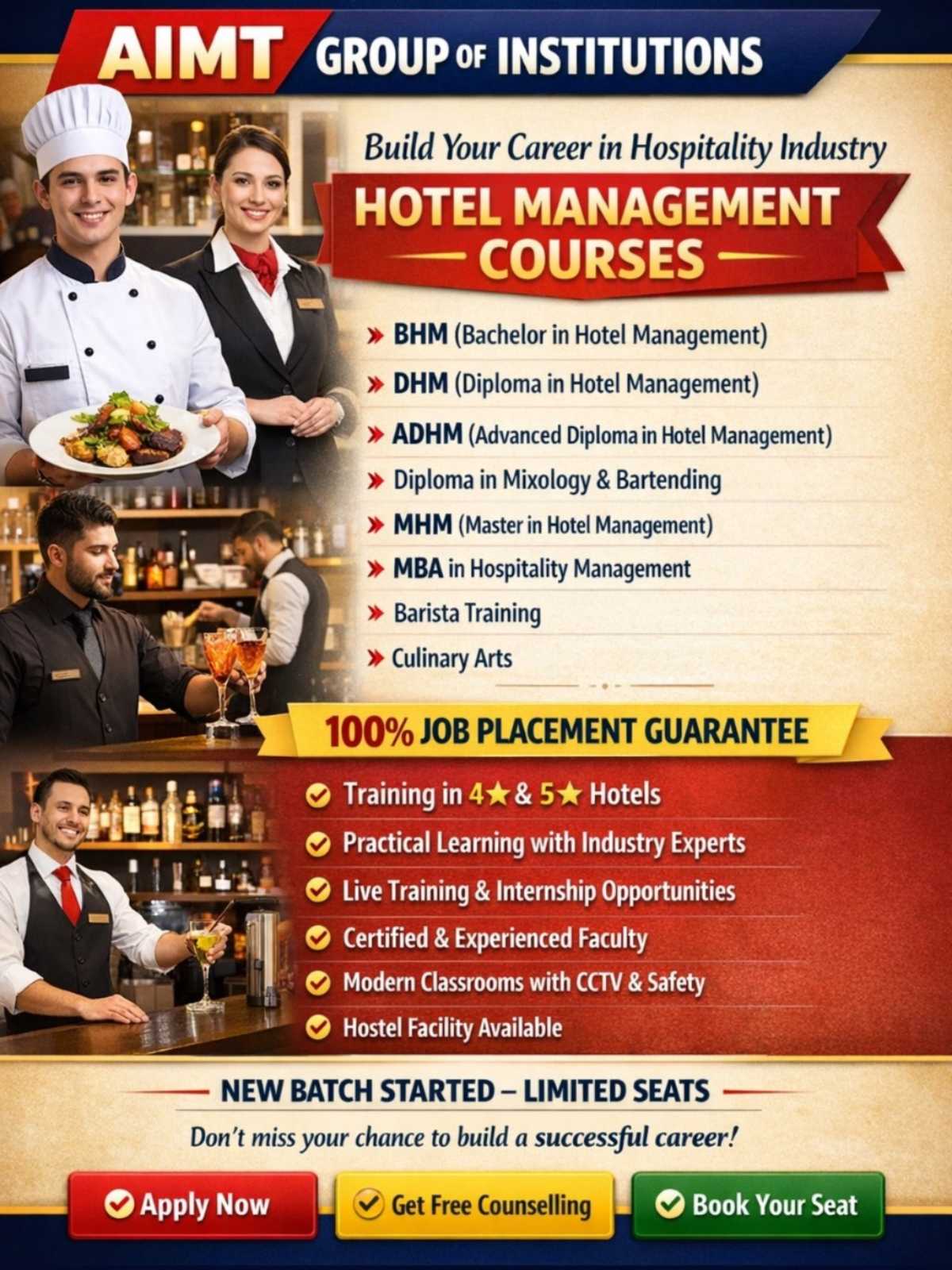 Best college for Hotel management program Best faculty. We suggest you Join AIMT and Get Sure for 100% Placement.